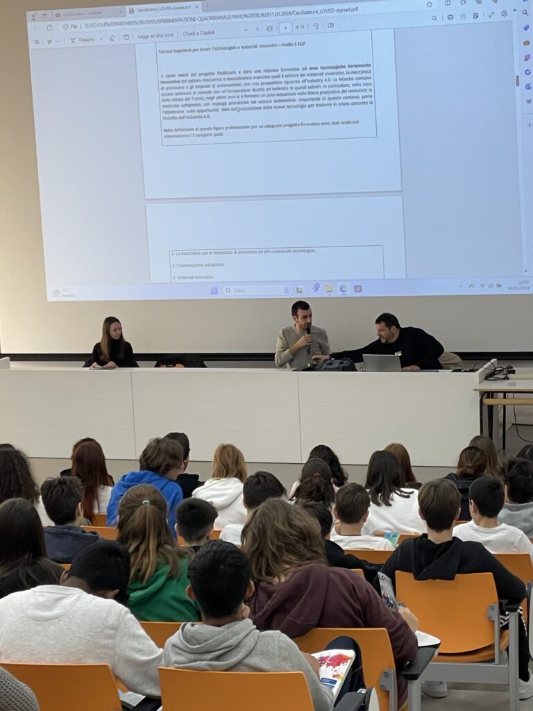 L’ Inge. Salvatore Iorio ha presentato tutti i programmi offerti dalle Scuole Loviss, ed in particolare il Vicepreside, Prof. Alessio Monaldi, ha minuziosamente descritto i due ultimi ed innovativi corsi di studio che partiranno già dal prossimo settembre nelle Scuole Loviss: Diploma di Tecnico Meccanica, Meccatronica ed Energia Ambiente ed il Liceo del Made in Italy.